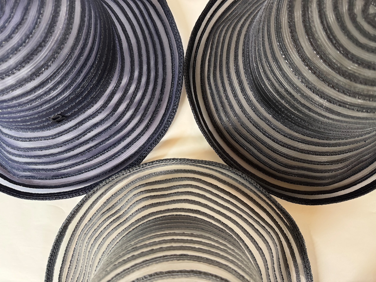 被るとツバの部分がボーダー柄に透けてお洒落感漂うお帽子。よそにはない素材、デザインでとっても素敵な雰囲気。デニムなどのカジュアルスタイルやキレイめなセットアップ、エレガントスタイルにも馴染みます。フチにはワイヤーが入っている為、ツバを上げたり下げたりアレンジも楽しんで頂けます。
