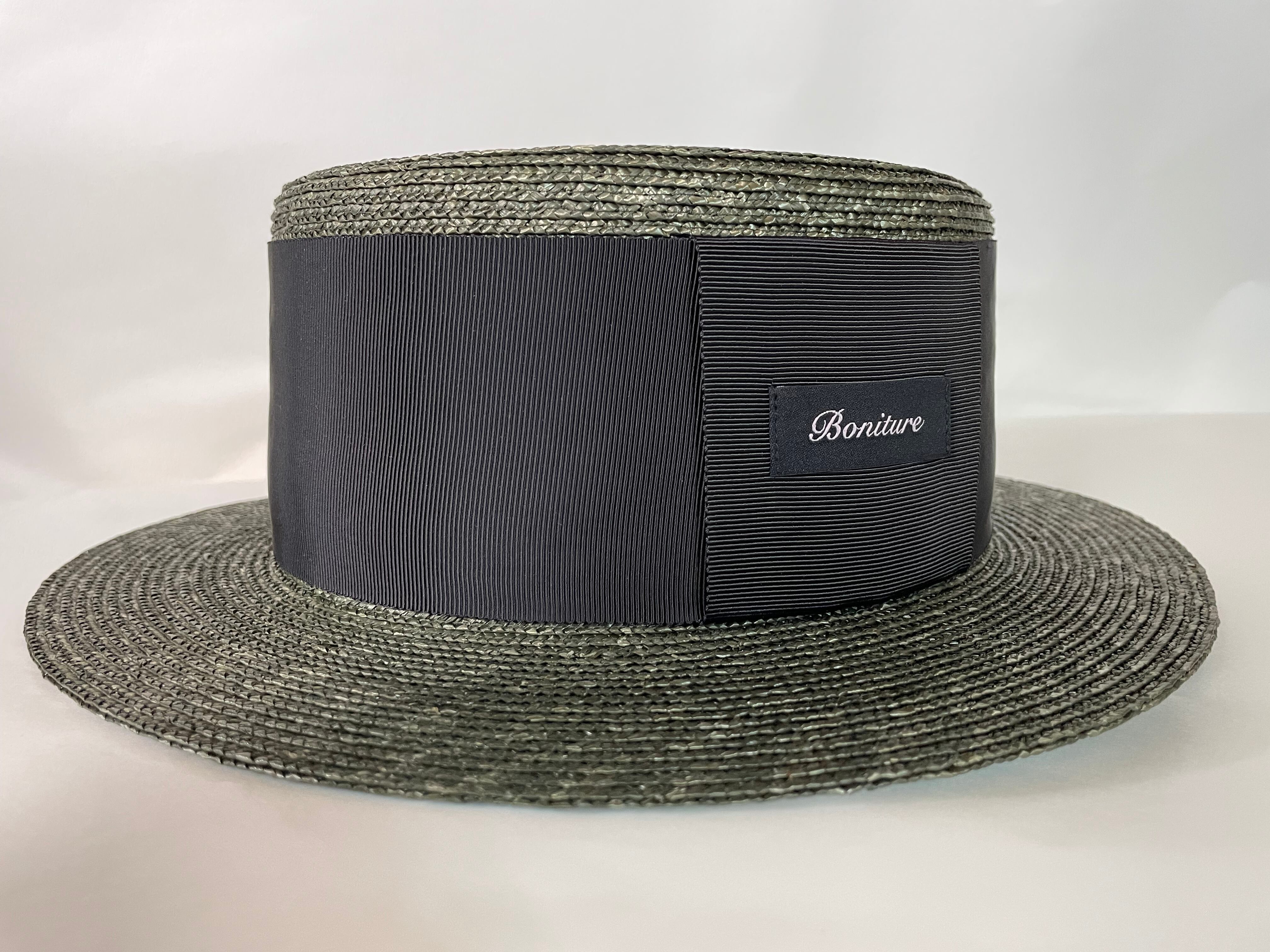 幅広リボンがスタイリッシュなカンカン帽。